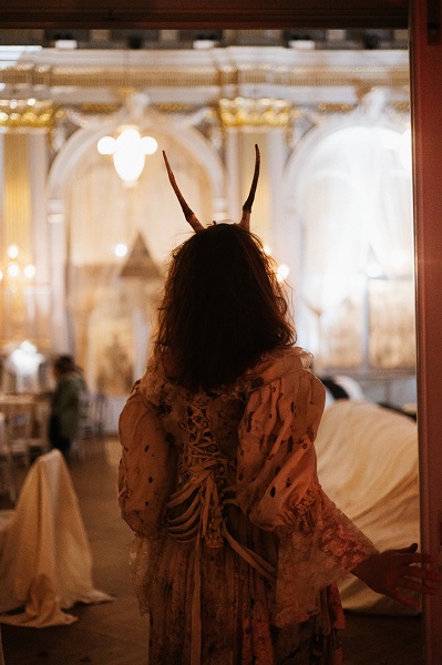 Travail participatif autour des "présences", personnages fantomatiques déambulant dans le théâtre durant le festival.