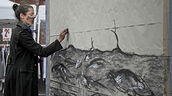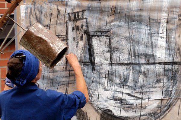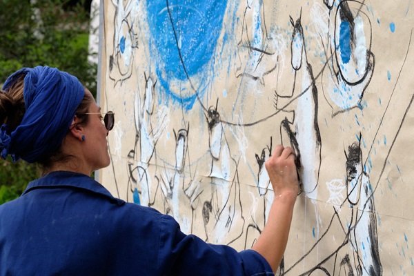 Inspiré par l'oeuvre d'Alexander Calder, l'installation est un véritable puzzle tableau, il se compose et se complète à la craie au gré des lieux et des besoins.