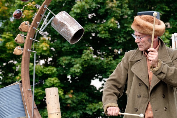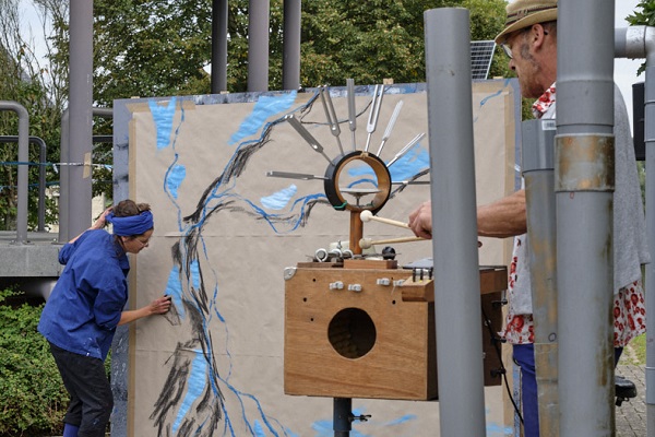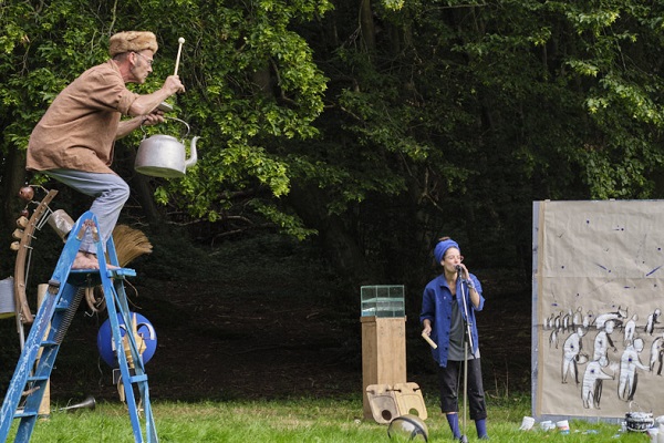 un musicien et une scénographe s’inventent une poésie, écho d'un monde qui trébuche.