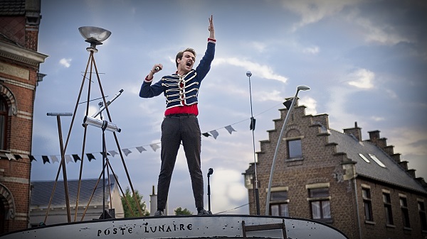 Une caravane itinérante, un bureau de poste lunaire, 1.5 km de fanions suspendus sur les différentes places des villages, une poésie mystère.