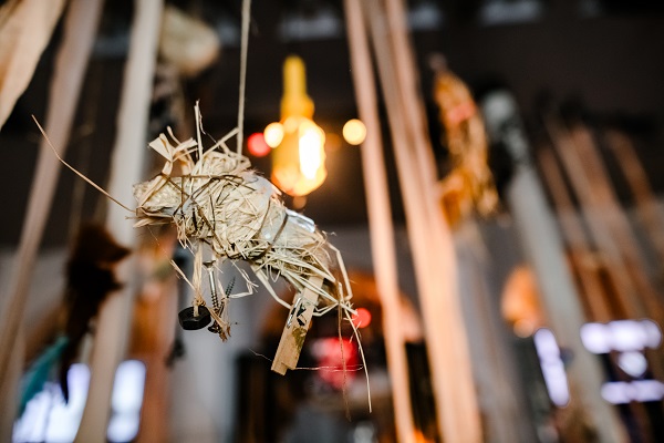 Installés dans le centre culturel et dans les rues adjacentes du quartier, les oiseaux chantent, habillés de bois et de graminés glanés, ornés de rubans colorés; un clin d'oeil aux talents des artistes que j'ai rencontrés lors de mes voyages au Sénégal.